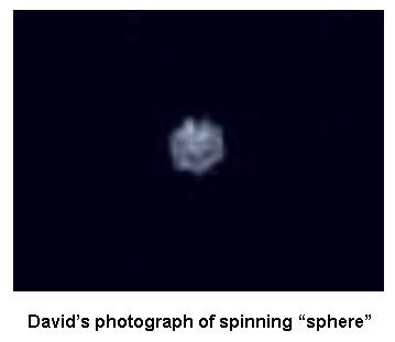 Case 112260: The Elk Grove, California, sighting described above is similar to Case 112260 which occurred nine days earlier over Charlotte, North Carolina. The main witness, David, and his two friends observed the apparently random movements of what they described as a yellow-orange “sphere”. Viewing their video, the object appears to be a bluish-white color with an irregular internal coloration. There appeared to be a similar “sphere” inside the outer sphere. The object was at 70° above the horizon, pulsated and appeared to spin. Five minutes later, the object hovered in place. David’s zoomed screenshot of the object is below.