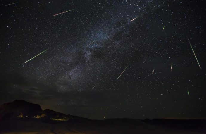 Also known as “falling stars,” these fast-moving “stars” that light-up brightly and then quickly dim are caused by particles, dust and small rocks—mostly no bigger than a smaller than a grain of sand—striking the Earth’s atmosphere about 60 miles/100 kilometers up. They light-up as they discharge the energy gained from striking the atmosphere. What you’re seeing are meteoroids entering Earth’s atmosphere at high speeds—the Perseids travel as quick as 37 miles/60 kilometres per seconds—on parallel trajectories.