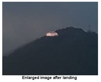 Laura’s description of the event follows: “I was just trying to take a beautiful picture of the sunset. I felt something different that day in the sky, but I couldn’t see clearly the object with my eyes. It was a picture with the phone which took [the object] perfectly. The object [went up] to the top of a mountain, landed and then disappeared.” Commentary Although there were no other witnesses and the report is incomplete, the object, at least to this writer, doesn’t appear to be any “normal” aircraft. Whether it’s a hoax or not, we’ll just have to await the findings of the field investigator. Case Disposition: Assigned (to a MUFON field investigator) This case is under investigation by MUFON and does not yet have a determination as to its authenticity.